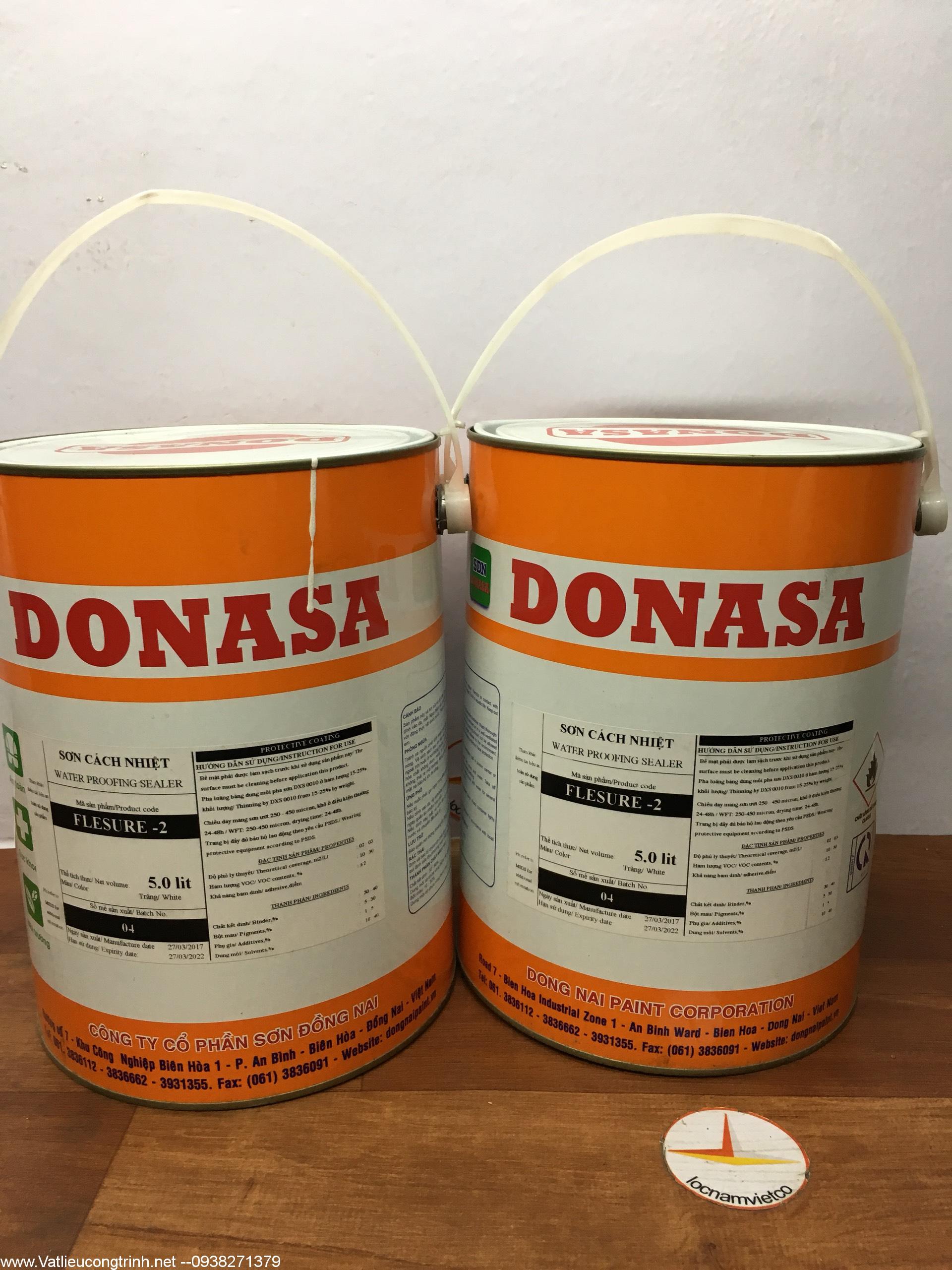 Donasa Flesure -2 Là loại sơn gốc dầu có khả năng cách nhiệt chống nóng cho mái tole và tường bằng cách phản xạ ánh nắng mặt trời. Có thể giảm được 15 độ C khi nhiệt độ mái tole 58 độ C .
